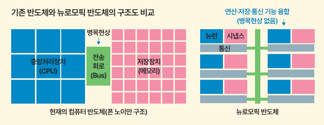 뉴로모픽 컴퓨팅은 이 문제를 해결하기 위해 인간의 뇌 구조를 하드웨어와 알고리즘으로 모방했습니다. 우리 뇌의 신경세포(뉴런)와 연결고리(시냅스)처럼, 정보를 저장하는 기능과 처리하는 기능을 하나로 합쳐버린 것이죠.